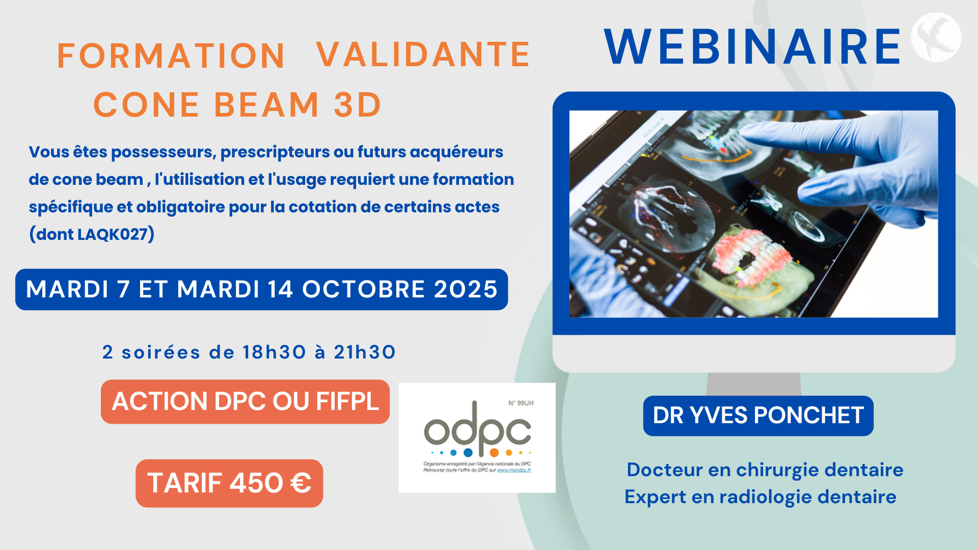 Formation validante Cone Beam en webinaire en soirée éligible DPC OU FIFPL